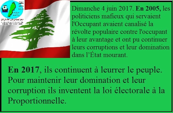 Samedi 31 mars 2018 Nous voterons pour l'indépendance, la transparence, l'intégrité et la compétence Nous voterons pour la voix préférentielle qui s’oppose à la politique féodale corrompue Nous voterons pour aider les classes pauvres et moyennes Nous voterons contre la corruption, contre la distribution des privilèges du pouvoir entre les clans politiques et contre le clientélisme Nous voterons contre le culte des chefs, contre le féodalisme et contre l’héritage féodal des postes politiques. Nous voterons contre les milices armées mafieuses Nous voterons pour changer la classe politique féodale corrompue Nous voterons pour la reconstruction de la Constitution de l’Etat, pour les lois et les droits humains Nous voterons pour la défense de la démocratie laïque transparente Nous voterons pour maintenir une véritable égalité entre chrétiens et musulmans dans tous les postes de l’Etat. ADFTL - Sur la base de ces principes: - Nos adversaires sont Hezbollah, Mouvement Amal, le parti Baath Syrien au Liban du Régime de Bachar AL ASSAD, le parti national Syrien au Liban ALKAWMI, et tous ceux qui appartiennent aux courants du 8 Mars qui sont avec le régime syrien et contre l'indépendance du Liban. - Nous ne devons pas aider la traditionnelle classe politique féodale corrompue qui n'a pas soutenu les classes pauvres et moyennes. Nous ne devons pas aider le parti féodal Kataeb, le parti féodal National Libéral, le parti féodal Mouvement de l'Indépendance, le parti féodal Socialiste, le parti féodal Courant du Futur, le parti féodal Courant Patriotique Libre, le parti féodal Courant Almarada, et d'autres, qui sont tous détenus par des familles riches féodales avec héritages politiques des chefs, des pères aux fils. Ils font de la politique un commerce pour la famille. - Nous ne devons pas aider toute personne qui aurait coopéré avec Hezbollah, ou le régime terroriste syrien, ou le régime iranien ou le régime russe. - Nous ne devons pas aider tout parti qui a un caractère religieux et toute personne qui défend d'abord ses doctrines religieuses ou racistes en opposition avec l'Etat démocratique laïque. - Nous conseillons à tous ceux qui nous font confiance de chercher à voter pour une voix préférentielle proche de nos principes. La plupart des listes électorales n'ont pas un programme politique cohérent pour unir les candidats de la même liste. - Nous regrettons de ne pas pouvoir avoir des candidats au nom de l'ADFTL, pour plusieurs raisons. Nos adversaires qui ont détruit l'Etat libanais par la corruption et l'insécurité, et empêchent les libanais de vivre dignement, sont nombreux mais ils ne dépassent pas 10 % des libanais. Nous avons le devoir d'expliquer et convaincre la majorité silencieuse qui dort afin qu'un jour le peuple se réveille pour construire une majorité parlementaire en sa faveur. ---------------------------------------------------------------- ADFTL, Association pour la Démocratie Forte Transparente au Liban. Notre morale fondamentale : < Je travaille pour retarder la mort et améliorer la qualité de vie de tout être humain chez tous les peuples >. www.lebanese-transparent-democracy.org/fr/indexfr.html webmaster@lebanese-transparent-democracy.org ______________________________________________